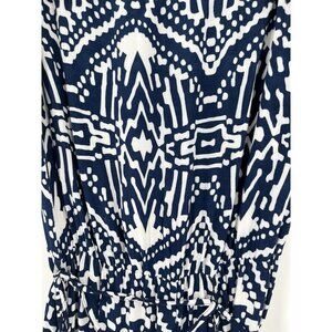 MSK Halter Strapless Jumpsuit Romper Medium Navy Orange Abstract Lightweight