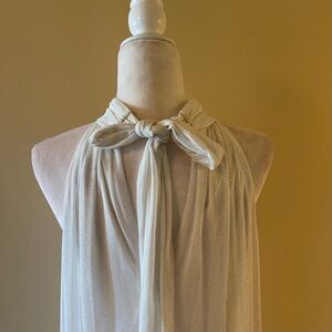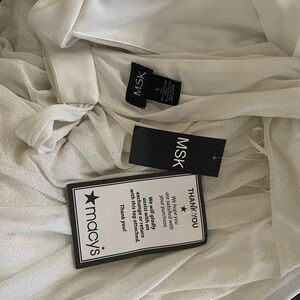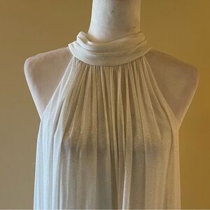 MSK High Neck Sparkle Mesh Wide Leg Jumpsuit. Subtle shimmer and a flowing silhouette bring elegant drama to this mock neck jumpsuit. BEAUTIFUL jumpsuit.
