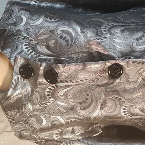 Gray and black colored buttons down the front long sleeves jacket.