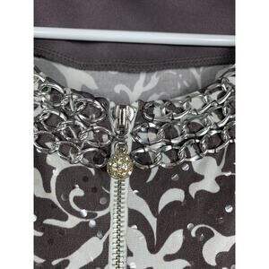 Ladies medium MSK full zip metallic jacket brown/white paisley sequin.