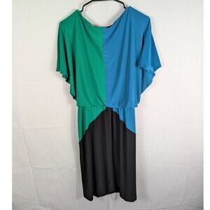 MSK M Dress Womens Colorblock Blue Green Black V Neck Midi Stretch Lined