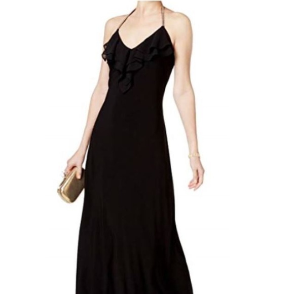 MSK Medium Ruffle Halter Rhinestone Gown
