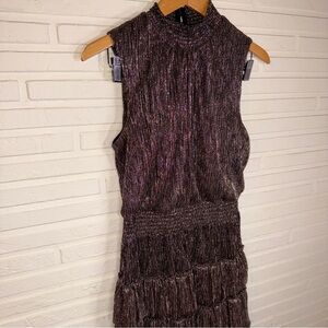 MSK Metallic Smocked Tiered-Skirt Dress, Women’s Size Medium