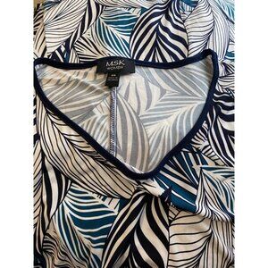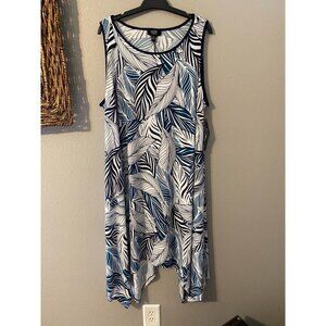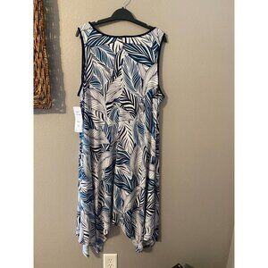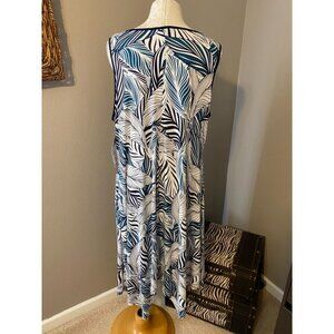 MSK Midi Dress 2X Black White Teal Sleeveless Stretch Lightweight Summer NEW NWT