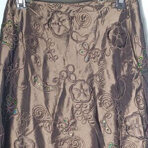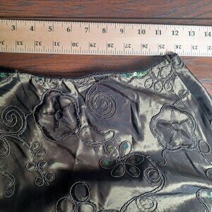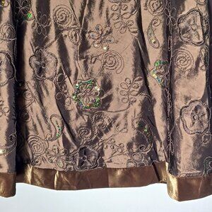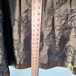 MSK Midi Skirt Womens Small Green Fairycore Grunge Embroidered Mixed Media Satin