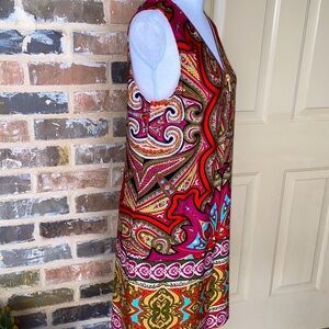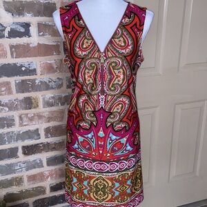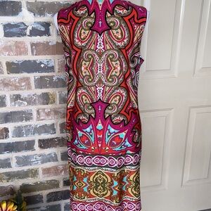 MSK Multi Color Paisley Print Zipper Detail Sleeveless Shift Midi Dress Size M