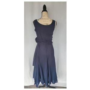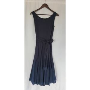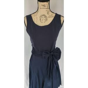 MSK Navy Belted Midi Dress Size 8 Sleeveless Mix Media