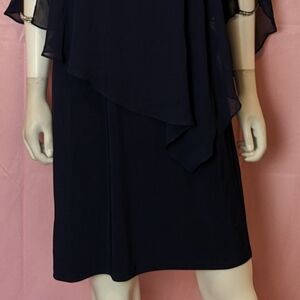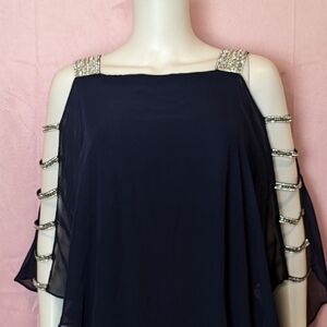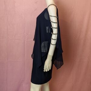 MSK Navy Blue Cold Shoulder Flowy Sleeve Embellished Sheath Mini Dress Size Smal