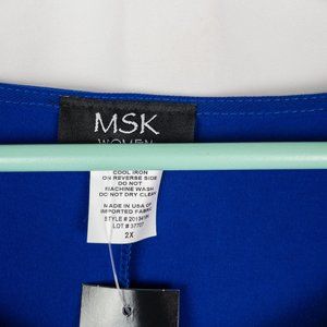 MSK Plus Size Faraj Embellished-Sleeve Crystal V Neck Formal Midi Dress Blue