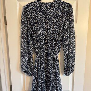 MSK Printed Pintucked Midi Dress Navy Chiffon Lightweight