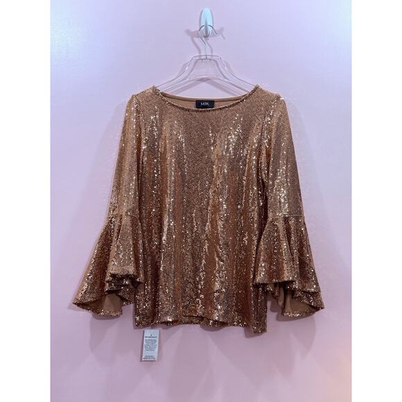 MSK Rose Gold Sequin Boat-Neck Bell-Sleeve Blouse Size Small NWT