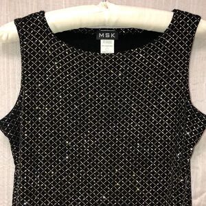 MSK S Evening Metallic Gold Silver on Black Sleeveless Tank Top