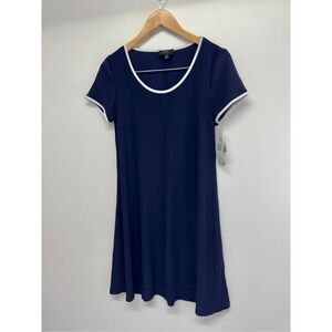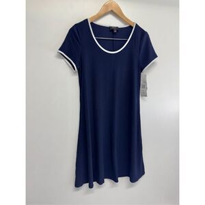 MSK Shift Dress Size Small Navy Short Sleeve Mini Round Neck Pull Over