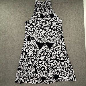 MSK Shift Dress high Halter Neck black & White Medium Floral Stretchy Sleeveless