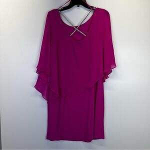 MSK Short Sleeve Embellished Cape Sheath dress fiercely fuchsia - XL