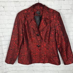 MSK Silk Red and Black Embroidered Blazer Size Large
