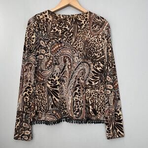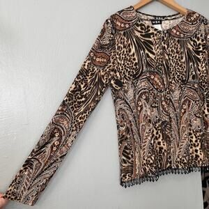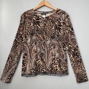 MSK long sleeve beaded cardigan and tank top matching set brown and black leopard print acetate stretch in Excellent pre-owned condition!