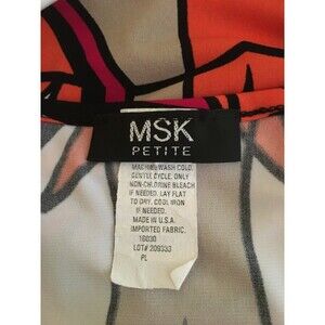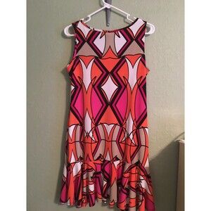PRE-OWNED MSK PETITE SIZE PL VERY CUTE SLEEVELESS SUMMER DRESSMULTICOLOR GEOMETRIC PRINT HEM PLEATED RUFFLEDRESS IN VERY GOOD CONDITION NO DAMAGE COMES FROM NON SMOKING HOME.96% POLYESTER 4% SPANDEX MACHINE WASH COLD MADE IN USA.MEASUREMENTS LYING FLAT: ARMPIT TO ARMPIT: 18"LENGTH CENTER BACK TO END: 31 1/2"PLEASE FEEL FREE TO ASK QUESTIONS.