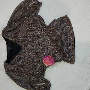 Beautiful sparkly batwing blouse with open cold shoulders, embellishments on shoulders and arm openings. on one of the embellishments one small diamond is missing but you cannot notice unless up close.
