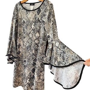 MSK Sz S Black White Snakeskin Design Large Oversized Angel Sleeve Relaxed Dress