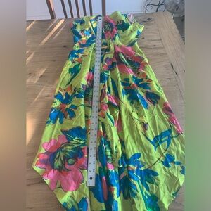 MSK Watercolor Spaghetti Strap Jumpsuit Neon Green Front Tie Women’s Medium NWT