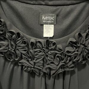 MSK Women Black Sleeveless Top, 2X, Ruffle Neckline, Plus Size, Classy, NWT