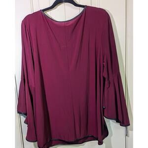 MSK Women Blouse Plus Size 3X Faux Leather Trim Flutter Sleeves Blouson