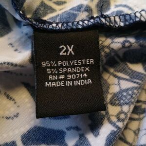 MSK Women's 2XL Blue and White Floral Design Short Sleeve Midi Dress