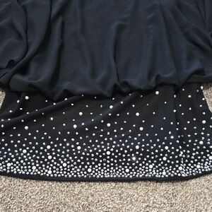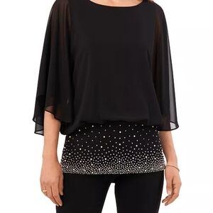 Chic black chiffon blouse. Features a studded hem. Perfect for stylish outings.