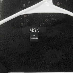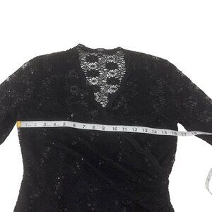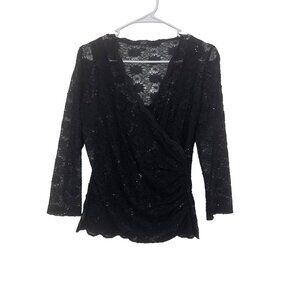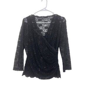 MSK Womens Black Lace Sequined V-Neck Wrap Top Blouse Size M Nylon Spandex