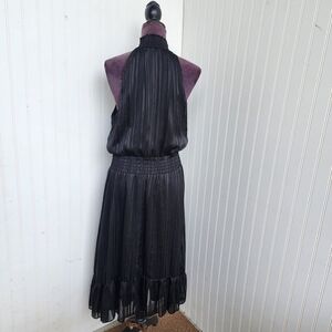 MSK Womens Black Silver Metallic Mock Neck Keyhole Dress Midi Smocked Waist Sz L