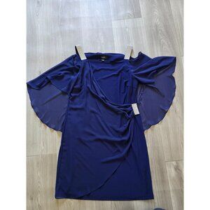 MSK Womens Chiffon Cold Shoulder Dress L Blue With Rhinestone Straps