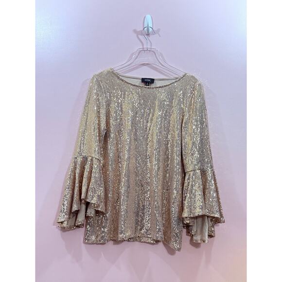 MSK Women's Gold Sequin Boat-Neck Bell-Sleeve Blouse Top Size Medium