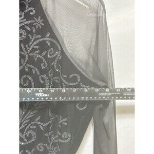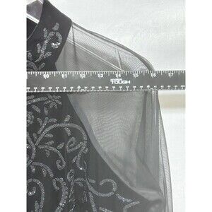 MSK Womens L Black Beaded Sparkle With Mesh Sleeves Top