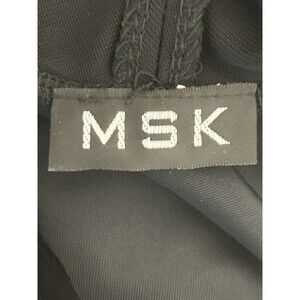 The MSK Women's Black Beaded Sparkle Top with Mesh Sleeves is a stylish and elegant blouse designed for women. This cropped top features a round neckline, long sleeves and a size L for a regular fit. The beaded accents add a touch of sparkle to the black color, making it a versatile piece for various occasions. The mesh sleeves provide a breathable and comfortable feel while adding a unique flair to the overall design of the top.