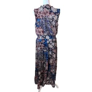 MSK Women's Maxi Dress Floral Print Sleeveless V Neck Smocked Waist Size L