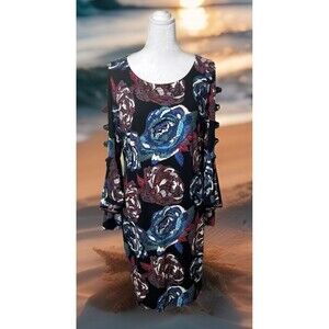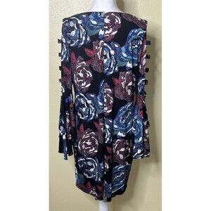 MSK Womens Multicolor Floral Cold Shoulder Bell Sleeve Knee Length Shift Dress L