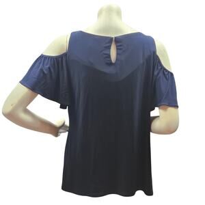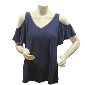 MSK Womens Rhinestone-Trim Cold-Shoulder Top Dark Blue Large Polyester Spandex