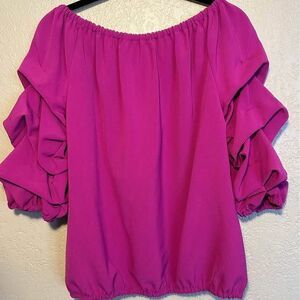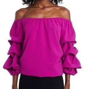 MSK Women's Sexy Fuchsia Off-The-Shoulder Puff Sleeve Blouse Top