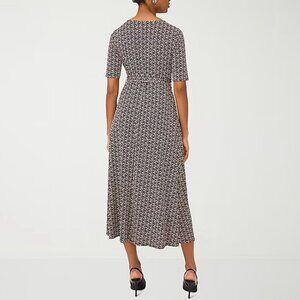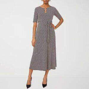 MSK Womens Short Sleeve Geometric Midi Fit + Flare Dress - Tan Sz Small 925152