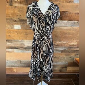 MSK Zebra Animal Print Sheer A-Line tie Dress black liner