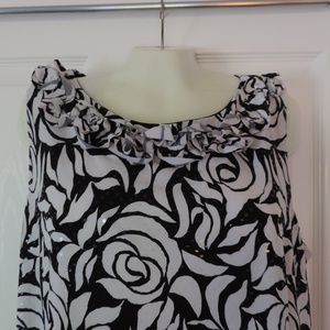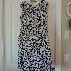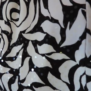The dress has little shimmery dots I tried to show in pics. Bust 36" length 38". Great for work. Super comfortable and won’t wrinkle.
