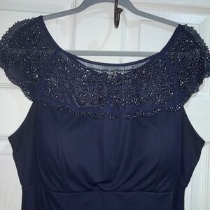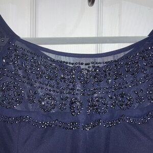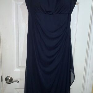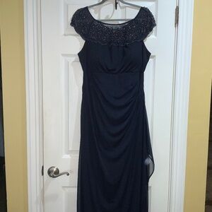 MSK navy beaded full length sleeveless formal dress Sz 14 ruching side ruffle