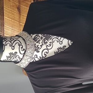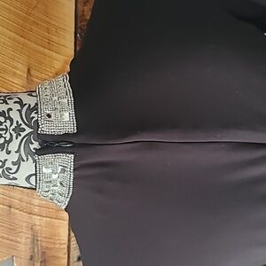 MSK sz small black rhinestone collar jewels front cut out formal dress