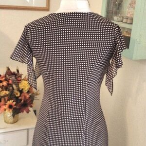 This dress has ruffles and tucks in all the right places. Side zip. Fully lined. Fluttery sleeves. Size 10 measures 39 at chest 34 at waist, 44 at hips 46 long from shoulder to hem. The soft skirt has beautiful movement when you walk or dance.
