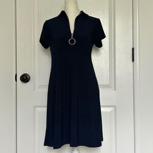 Casual comfortable blue dress with spandex stretch. Silver zipper with pull ring. Great condition. No flaws.