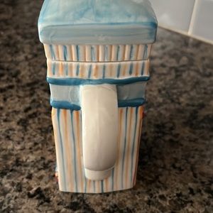 Like new MSRF Designs tea pot. Hand painted with a jeans store front and tees store front imagery. Loving collectors items
