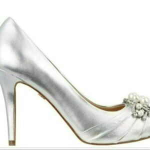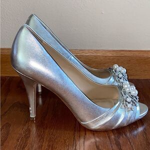 MSRP $125 Nina Swarovski Crystal Silver Heels Women's Size 8.5