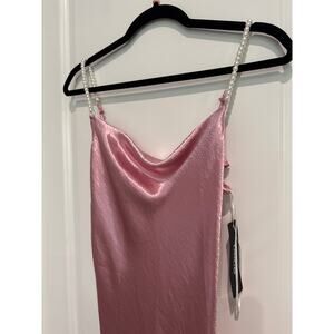 MSRP $129 HAMMERED SATIN COWL NECK PEARL STRAP MAXI DRESS S | SAME DAY SHIP
