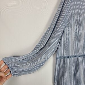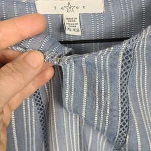 MSRP $50 Fever Smocked Long Sleeve Blouse Blue White Crochet pin stripe Sz XL